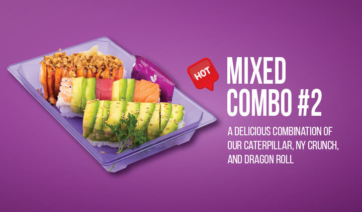 A delicious combination of our Caterpillar, NY Crunch, and Dragon Roll