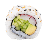 Cucumber, pickled carrot, avocado, and nori topped with sesame seeds