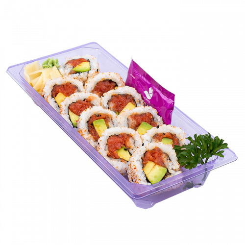 Tuna*, avocado, cucumber, sriracha, spicy mayo and shichimi