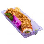 Our California Salad Roll base topped with surimi salad, spicy mayo, sushi sauce, and fried onion
