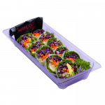 Rice paper filled with lettuce, red cabbage, carrot, avocado, and cucumber