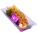 Tempura shrimp, surimi salad, avocado, and nori topped with surimi salad, spicy mayo, sushi sauce, and fried onion